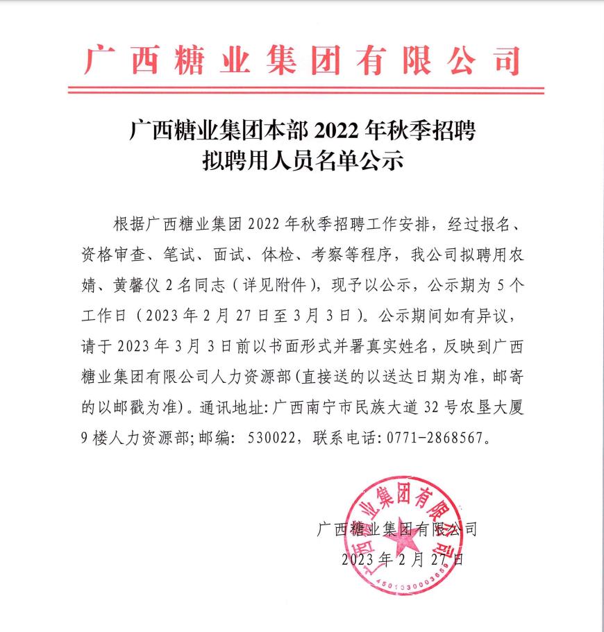 上一篇:广西糖业集团下属企业2022年秋季招聘第二批拟聘用职员名单公示