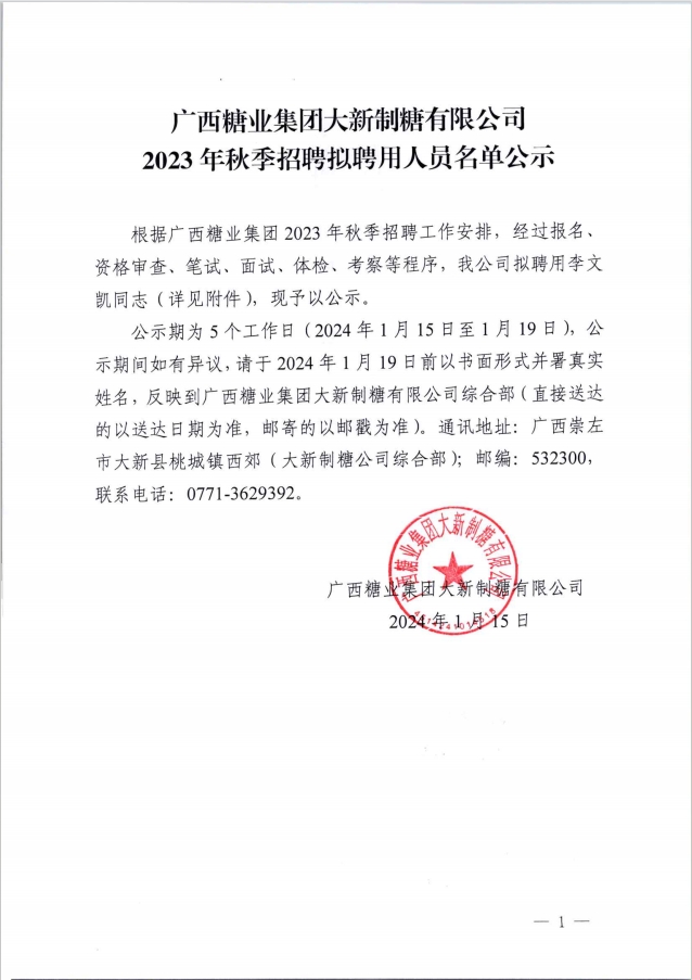 下一篇:广西糖业集团平吉制糖有限公司2023年农务手艺专员招聘拟聘用职员名单公示