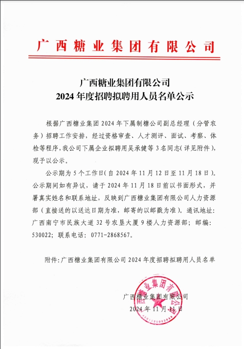 上一篇:广西糖业集团2024年下属制糖公司副总司理(分担农务)果真招聘通告
